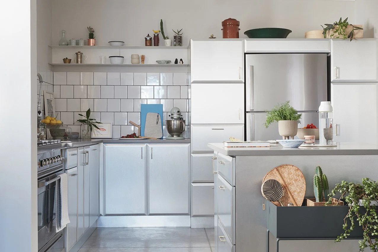 The axis between the private areas and the communal space, was the main focus in the design process; A bilateral bespoke unit made of birch wood and colored steel, acts both as a division between the spaces, as well as a wide storage solution. The bedrooms along with the added bathroom, are all concealed behind the elongated facade of the unit, creating a clean and continuous look.
